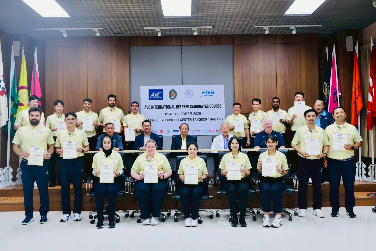 Bangkok, Thailand, October 7, 2025 – After a week of intensive theoretical and practical sessions, the AVC International Referee Candidates Course came to a fruitful close, with 18 candidates from 10 countries, including five women, proudly earning their certificates upon passing the final examination.