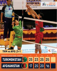 Afghanistan, however, refused to bow down easily. Sabawoon Wardak and Ghulamrasool Haidari sparked a spirited fightback, levelling the score by taking the second set in style. But Turkmenistan’s composure and tactical discipline once again made the difference as they regrouped to dominate the next two sets, wrapping up a well-deserved 3–1 victory and extending their unbeaten streak to three matches.