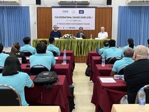 “On behalf of TVA President Mr Somporn Chaibangyang, I would like to extend a warm welcome to all participants of the FIVB International Coaches Course Level 1, being held here at the FIVB Development Center in Thailand from October 13 to 17, 2025. I would also like to take this auspicious opportunity to welcome FIVB Course Instructor Mr David Smith and Assistant Course Instructor Mr Bakhytzhan Baitureyev,” said Shanrit.